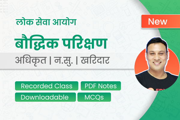 लोक सेवा आयोग आप्राबिधिक तर्फाका न्याय, पररास्ट्र, प्रशासन, लेखापरीक्षण, र संसद सेवा, राजपत्र आनंकित प्रथम श्रेणी, नायव सुब्बा वा सोसरह पदको खुला प्रतियोगितात्मक परीक्षाको लागी| यो कोर्समा नासु तह को प्रथम पत्र अन्तर्गत पर्ने IQ र GK बिषयको लोक सेवा आयोगले तय गरेको पाठ्यक्रममा आधारित भई पूर्ण पाठ्यक्रम समेटिएको छ | नेपालकै उत्कृष्ट प्रक्षिशकहरु द्वारा तयार पारिएको यो E-Learning Video course मा पाठ्यक्रममा रहेको हरेक शिर्षक पूर्ण रुपमा समेटिएको छ | यो course मा PDF Book र Online Test Series पनि समेटिएको छ | यो course मा सम्पूर्ण पाठ्यक्रम समेटिनुको साथै अहिले सम्म भएका परीक्षाको प्रश्नहरु पनि हल गरिएको छ | यो video course पूर्ण रुपमा offline mode मा पढ्न सकिनेछ |